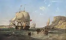 Ommanney joined the Royal Navy in 1786.[2] Promoted Commander in 1796, he was given command of a brig and arrested a fleet of Swedish merchant ships in the North Sea.[2] Promoted to Post Captain in 1800, he commanded HMS Hussar, HMS Robust and then HMS Barfleur.[2] In 1825 he took command of HMS Albion and took part in the Battle of Navarino in 1827.[2]