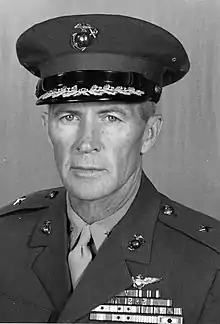 While in this capacity, Coursey was co-responsible for the training of replacement personnel for combat units deployed in South Vietnam and he personally administered the planning for and formation of a Helicopter Training Group. He also directed of the 3rd Marine Aircraft Wing's KC-130 training and utilization program. For his service in that capacity, Coursey was decorated with his second Legion of Merit.[2][9]
