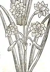 Parkinson actively sought new varieties of plants through his contacts abroad and by financing William Boel's plant-hunting expedition to Iberia and North Africa in 1607–1608. He introduced seven new plants into England and was the first gardener in England to grow the great double yellow Spanish daffodil (Pseudonarcissus aureus Hispanicus flore pleno or Parkinson's Daffodil, see illustration).[3][9] ("I thinke none ever had this kind before myselfe nor did I myself ever see it before the year 1618 for it is of mine own raising and flowering first in my own garden".)