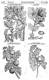 - ↑ Gerard, John (1597). Thomas Johnson (ed.). The Herball or Generall Historie of Plantes... Very Much Enlarged and Amended by Thomas Johnson, etc. London: Edm. Bollifant for Bonham Norton and Iohn Norton. Later editions were published in 1630 (publisher and place of publication unknown), and 1633 and 1636 (London: Adam Islip, Ioice Norton and Richard Whitakers). The book has been republished in the following versions: