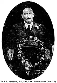 - ↑ J. R. (1926). "John Robertson Henderson, C.I.E., M.B., F.L.S." Proceedings of the Royal Society of Edinburgh. 45 (4): 378–379. doi:10.1017/S0370164600019192. ISSN 0370-1646.