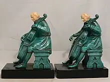 Collectors of antique bookends are familiar with Ruhl's work. Ruhl's involvement in creating bookends began in 1915 and continued until his death in 1940. Most of his work was for J.B. Hirsch and Armor Bronze. Some work was also done for K&O (Kronheim and Oldenbusch).