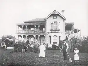 His splendid sandstone mansion Mayfield House,[26] "an impressive residence",[27] is now a shadow of its former glory. It is currently leased as a hostel for Youth With A Mission and is owned by the Baptist Church, its once magnificent gardens having been built upon.