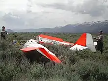 Wreckage of Walton's experimental aircraft at Grand Teton National Park. Photo taken by the National Park Service on June 27, 2005.