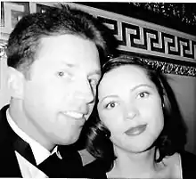 The couple celebrating at a Moscow Opera House in the summer of 2001 after a successful mummy heist in Egypt