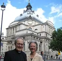 John and Cynthia Tudor outside Methodist Central Hall, Westminster