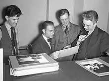 Farm Security Administration photographers (from left) John Vachon, Arthur Rothstein and Russell Lee with Roy Stryker