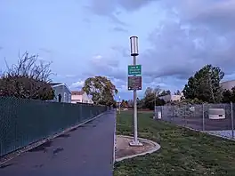 It is 80 feet (24 m) wide and runs east to west for 2.7 miles (4.3 km) above the Hetch Hetchy Aqueduct, linking Orchard Gardens Park on Sunnyvale's west side and Fairwood Park on the Santa Clara border in Sunnyvale.