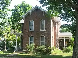 John W. Smith House, also known as the Roberta Nicholson House, is a historic home located at Rochester, Fulton County, Indiana. It was built in 1892, and is a 2+12-story, Neo-Jacobean style frame dwelling on a limestone block foundation. It features a projecting round tower, wraparound porch, and 75 windows of various sizes.[2]:2