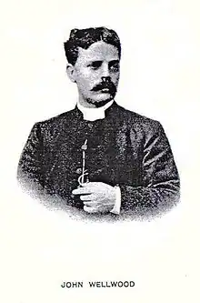 John Wellwood (1853–1919) was a poet, writer, biographer and minister of the Church of Scotland. He was born at George Street, Glasgow on 18 December 1853. His father was John Wellwood, a commission agent, and his mother was Margaret Thomson. He was educated at Annfield School, Bridgeton, Glasgow and at the University of Glasgow. He chose the Church of Scotland instead of the United Presbyterian Church of which his parents were members, mainly because it "offered more scope for freedom and breadth of thought."[1] After he was licensed by the Presbytery of Glasgow, he served as an assistant Minister at Auchterderran, at Glasgow Cathedral, and at Campbeltown. He was ordained on 5 April 1883 and immediately became minister in the parish of Drainie in the Presbytery of Elgin. Besides poetry, his interests included Liberal politics and musical composition and he composed several hymn tunes.[2] On 26 April 1883, he married Isabella Herkless, the only daughter of William Herkless, Glasgow and the sister of Sir John Herkless, Principal of St. Andrews University. They had five sons and two daughters. Two of their sons were officers in Scottish regiments who died in action during the 1914-18 War. Wellwood remained Minister at Drainie till his death on 7 February 1919. The untimely death of his two sons contributed to his demise.[3]