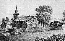 The Hudson's Bay Company desired that all who came under its influence, including those HBC retirees who wished to remain in the country, orphaned mixed-race children and others associated with the Protestant community in the west would have their spiritual needs met by a chaplain in the company's employ.[3] West's placement in Western Canada was also due to the Company's belief that a number of missionary societies would provide financial support if the missions included Indian children from the Red River region; to this aim West established the Red River Academy.[3] West sailed to Rupert's Land in May 1820 with George Harbidge, a school teacher. The first Protestant missionary to visit that area, West travelled without his pregnant wife and small children, intending to fetch them once a mission was set up.[4] At the Red River Settlement West located his mission three miles north of Fort Douglas; here he constructed a chapel, a school and residences for himself and his Indian pupils. The chapel would eventually come to be known as 'The Upper Church' and later as St John's Cathedral.[1]