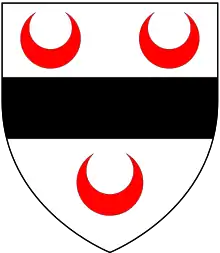 Arms of Pateshull: Argent, a fesse sable between three crescents gules[1]