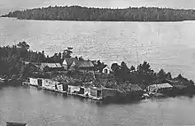 In the late 19th century, there was an upsurge of interest in recreation in the Isle Royale area, leading some inhabitants to supplement their income by working as hunting or fishing guides.[5] In 1892, Captain John F. Johns and his wife Catherine opened the Johns Hotel. The hotel was the first summer resort and first U.S. Postal Office on Isle Royale.[6] In addition, the site served as the base for the Johns family's commercial fishing business.[6] By 1902, there were 16 buildings on this site, including a hotel, dining room, store, barn, three fish houses, warehouse, five cottages of various sizes, root house, and two docks.[6]