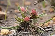 Johnsonia acaulis is a plant in the family Asphodelaceae and is endemic to the south-west of Western Australia. It is a rhizomatous, tufted, or grass-like perennial with white, pink or green flowers.