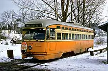 Johnstown Traction Company (JTC) was a public transit system in Johnstown, Pennsylvania, United States. For most of its existence it was primarily a street-railway system, but in later years also operated rubber-tired vehicles. JTC operated trolley (tram) service in Johnstown from February 23, 1910 to June 11, 1960. Johnstown was one of the last small cities to abandon trolley service in the United States.[1] It was also the smallest city to acquire a fleet of PCC cars and acquired trackless trolleys at a late date compared to larger transit properties. Many of the 1920s-era cars went directly to museums; however, none of the 17 PCC streetcars were saved. Efforts to sell the 16 then-surviving PCC cars intact were unsuccessful, and in 1962 they were scrapped, but many of their components were salvaged and sold to the Brussels, Belgium tram system,[2] reused in the last series of single PCC trams (7156–7171), which ran from 1970 until February 2010.