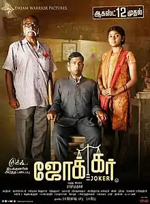 Joker is a 2016 Tamil-language political satire film from India. It was written and directed by Raju Murugan of Cuckoo fame and produced by S. R. Prakash Babu and S. R. Prabhu, under the banner Dream Warrior Pictures.[1][2] The film stars Guru Somasundaram, Ramya Pandian, and Gayathri Krishnaa in the lead roles, while Mu Ramaswamy, Bava Chelladurai, and Bala Murugan are in supporting roles.[3]