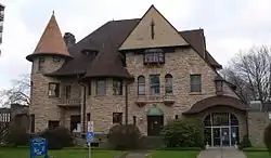 Jonas M. Kilmer House, also known as the Kilmer Mansion, is a historic home located at Binghamton in Broome County, New York. It was constructed in 1898 and is a large 3+12-story residence using an eclectic Victorian-era vocabulary. It is primarily constructed of stone and features irregular form and massing. The building is characterized by a variety of different sized gables and turrets, all surmounted by a high hipped roof clad in asbestos shingles. Jonas M. Kilmer (1843–1912) was the father of Willis Sharpe Kilmer (1869–1940).[2]