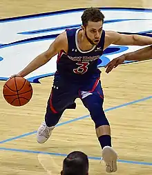 As a freshman, Ford considered redshirting, but ultimately came off the bench as a backup to Joe Rahon, who encouraged him to focus on his defense. In the summer of 2017, Ford was diagnosed with epiglottitis and ended up in the hospital, losing the 12 pounds he gained lifting weights. He scored 27 against BYU in the 2018 West Coast Conference (WCC) tournament. Ford had 19 points against Southeastern Louisiana in the first round of the 2018 NIT and made a SportsCenter top-10 play when he took a pass from Emmett Naar and did a double-spin move to complete a layup off the glass.[2] As a sophomore, Ford averaged 11.1 points, 2.7 rebounds, and 1.6 assists per game, shooting 50.8 percent from the field and 44.3 percent from behind the arc.[4] Ford scored a career-high 35 points on 11-of-17 shooting in a 92–63 win over Utah Valley on November 13, 2018.[5] As a junior, Ford was second in the WCC in scoring with 21.1 points per game to go with 2.5 assists, 2.8 rebounds, and 1.3 steals per game. He helped lead the Gaels to an upset over Gonzaga in the 2019 WCC championship and NCAA tournament appearance, where they fell to Villanova.[6] He was named to the First Team All-WCC.[7]