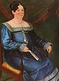 Thanks to his reputation as a portrait painter, he travelled extensively throughout Chile and Argentina, working on commissions from notable public figures. A distinguishing characteristic of his work is the text relating to his subject, placed on a banner, plaque or other device, that he included on many of his canvases. In 1820, he became a cartographer for the new Chilean government, but returned to Peru, probably in 1825,[1] and was appointed an official government painter. One of his most notable portraits, and one of the few that does not depict a member of the upper classes, is the one of José Olaya, a fisherman who became a hero of the Peruvian War of Independence.