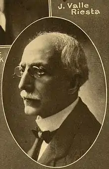 A native of Lima, Valle Riestra studied in London in childhood; returning to Lima, he continued self-study in music. In adulthood he went to Paris for further study, working from 1895 until 1897 with André Gedalge. Upon the organization of the Academia Nacional de Música he was appointed to the faculty. His compositions were national in character; some employed Inca melodies. They included three operas on Inca themes, including Ollanta (1900); Las rosas de Jamaica; and Atahualpa. Other works include a requiem for chorus and orchestra; orchestral works; choral music; and songs. He died in the city of his birth.[1] By marriage he was related to Juan Antonio Pezet, dedicatee of his requiem.[2]