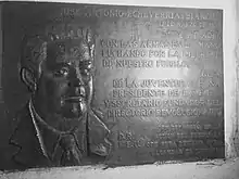 During the attack on the Radio Reloj station on March 13, 1957, Echeverría gave an anti-Batista speech that was broadcast to the Cuban nation. He estimated that the rioters could only occupy the radio station for three minutes, so he had to prepare a speech that lasted three minutes at most. Echeverría managed to finish his speech at the 181st second and left the station unharmed. On the way to the University of Havana, he opened fire on a police patrol and was killed during the shootout on the footpath of the north side of the university.[5] A memorial plaque now stands at the site.