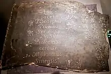 Epitaph from the tomb Joseph-Antoine Provana on display in the Guangzhou City Museum.