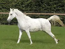 M. Cousin, commune of Peray, had a dapple-gray stallion, born 1827, slightly under 16 hands, which served 40 mares in 1832, 43 mares in 1833, and 42 in 1834. We find the names of Avelines and Hamelin among the owners of mares served by this horse...[12]