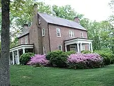 Gen. Martin, after helping adjudicate the western boundary line between North Carolina, Kentucky, and Virginia as far as the Cumberland Mountains, retired to his plantation Belmont on Leatherwood Creek, which he had purchased in 1796 from Benjamin Harrison V of Berkeley Plantation, which was originally built by a Capt. John Martin who was possibly the great-uncle of General Joseph Martin. General Joseph Martin died at his plantation on December 18, 1808, and was buried there in the family cemetery.[61][62] Buried in the family graveyard are three other Joseph Martins: Colonel Joseph Martin, son of the general, his son Joseph, and his grandson Joseph, who lived at Greenwood plantation.[63]