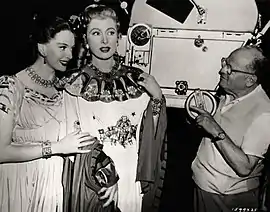 L-R: Deborah Kerr, Greer Garson & Joseph Ruttenberg on the set of Julius Caesar (1953)