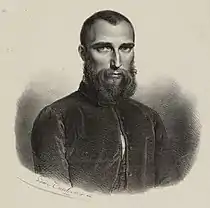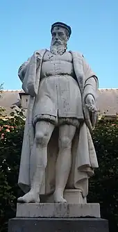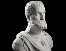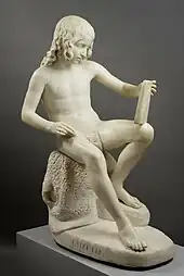 After returning to Mechelen for some time, he left in 1840 for Italy to further his studies.[2] Here he was joined by his younger brother Louis. He also met with other northern artists in Rome such as the Flemish painter Jean-François Portaels and the Luxembourg sculptor Jacobi Sturm.[7] For his bust of Pope Gregory XVI in white marble which he produced in Rome he was rewarded by the pope with a golden honorary metal. In Rome, he also completed a marble statue of the Virgin (Royal Museums of Fine Arts of Belgium, Brussels and started on the marble busts of Lucas Faydherbe and Godfrey of Bouillon. He completed both on his return to Mechelen. His marble statue of the Italian Renaissance painter Giotto as a 10-year-old boy (Museum Hof van Busleyden, Mechelen) was also produced during his Rome period and later received an honorable mention at the World Exhibition in Paris in 1855.[6]