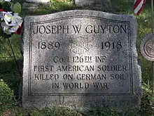 Joseph William Guyton (June 10, 1889 – May 24, 1918) was the first American soldier killed on German-held soil during World War I. Private Guyton was from the small town of Evart, Michigan.