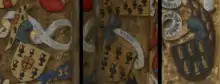 The arms of Lodewijk (left) with the van Maldeghem inescutcheon, those of his brother, Philip I (middle), and the latter's grandson, Jakob (left), as registered for the great tournament of Bruges (1391-1393).