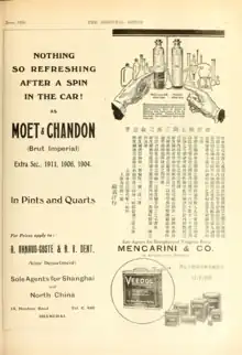 After voluntarily resigning from the Customs Service in 1912, Mencarini registered an import-export company, Mencarini & Co. (Chinese name 綿義 Mián yì) in Shanghai. Moreover, between 1912 and 1916 he acted as commercial attaché for the Spanish consulate in Shanghai. Over the following years, Mencarini is also credited in official records as owner or partner in different business: raw and manufactured cotton, gold (The National Trading Association Ltd.), real estate and finances (Staple, Wares, Real Estates & Stock Exchange Ltd.).[12]