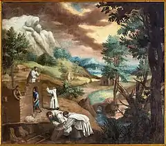 Cotán was a prolific religious painter whose work, carried out exclusively for his monastery, reached its peak about 1617 in the cycle of eight great narrative paintings that he painted for the cloister of the Granada Monastery. These depict the foundation of the order of St. Bruno, and the prosecution of the monks in England by the Protestants. Although the painter's religious works have an archaic air, they also reveal a keen interest in the treatment of light and volume, and in some respects are comparable with certain works by the Italian Luca Cambiaso, whom Cotán knew at the Escorial.