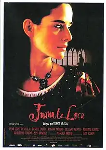 Mad Love (Spanish: Juana la Loca; lit. 'Joanna the Mad') is a 2001 period drama film written and directed by Vicente Aranda starring Pilar López de Ayala and Daniele Liotti. The plot follows the tragic fate of Queen Joanna of Castile, madly in love with an unfaithful husband, Philip the Handsome, Archduke of Austria. It is one of the several adaptations of Manuel Tamayo y Baus' 1855 historic drama The Madness of Love.[3]