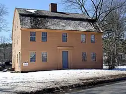 The Judah Holcomb House stood northwest of the village center of Granby, on the west side of North Granby Road north of Kearns Drive. It was a 2+1⁄2-story wood-frame structure, with a gambrel roof, central chimney, and clapboarded exterior. Its main facade was five bays wide, with a central entrance. The entrance surround was particularly fine, with fluted pilasters rising to an architrave and dentillated cornice. Sash windows were surrounded by simple trim, with those on the second floor butting against the plain box cornice. The interior of the house followed a typical central chimney plan, including a winding staircase in the front vestibule, parlor spaces to either side of the chimney, and the kitchen behind it. The downstairs rooms were notable for being entire sheathed in vertical board paneling that is unusually wide, typically 18 to 20 inches (46 to 51 cm) in width, a quantity not seen in other period houses in the state. Other chambers in the house also exhibited some amount of similar wainscoting.[2]