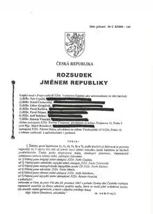 - ↑ Contiguglia, Cat (8 Dec 2010). "Judges' communist past public". The Prague Post. Retrieved 7 January 2013.