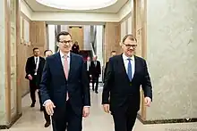 Juha Petri Sipilä (Finnish pronunciation: [ˈjuhɑ ˈpetri ˈsipilæ]; born 25 April 1961) is a Finnish politician who served as Prime Minister of Finland from 2015 to 2019. A relative newcomer to politics, he has a successful background in business.[2] He was the leader of the Centre Party from 2012 to 2019. After leading the Centre party to victory in the 2015 general election, Sipilä formed a centre-right coalition and was appointed Prime Minister by the Finnish Parliament on 29 May 2015.[3] On 8 March 2019, Sipilä stated his intention to resign as Prime Minister, citing difficulties in reforming Finland's health care system. President Sauli Niinistö asked him to continue with a caretaker government until a new government coalition was appointed on 6 June 2019 and was ultimately succeeded by Antti Rinne.[4]