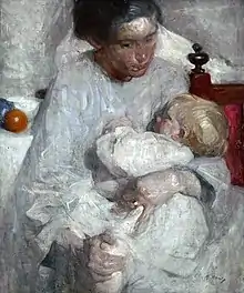 How was born in Bideford, Devon to a family of silversmiths.[1] She was the youngest of her family, and both of her parents died before she was an adult.[2] She moved with her family to Bournesmouth and attended the Herkomer School at Bushey, Hertfordshire.[2] She then moved to Paris to study at the Academie Delecluse around 1893, and began exhibiting in 1902 at the Societe Nationale des Beaux-Arts, where she exhibited around 147 works throughout her career.[2] While in Paris, she was introduced to the work of Rodin, Polin, Besnard and Lucien Simon, whose works may have influenced her art.[2] She eventually set up a workshop in Étaples. How painted various subjects, including nudes, portraits of children, and fruit and flower studies, and worked using a variety of media, including pastels, crayons, oils, and watercolors.[2]