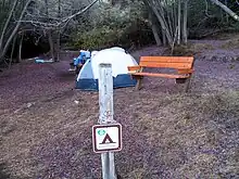 Julia Pfeiffer Burns State Park has two environmental hike-in camping areas, named by Sunset magazine as one of the "four best places to pitch a tent on the Pacific Coast."[14] Both sites have exceptional views of the Pacific Coast, but access is restricted to those with camping reservations. The Julia Pfeiffer Burns Underwater Area is a popular location for scuba diving.
