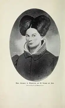 Perkins became an assistant teacher at the academy in 1819 and relocated to Ithaca, New York, later that year, where she also worked as a teacher.[1] In Ithaca, she met George Apollos Perkins (1798-1884), a pharmacist and fellow Athens native.[5][2] The couple married on May 1, 1823, and had five children together.[1]
