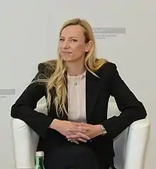 In the 2017 Austrian legislative election, she ran as a newcomer for the Styrian People's Party on the third list of the state list.[9] From 9 November 2017 to 22 January 2018, she was a member of the Austrian National Council.[10] Since 18 December 2017, she has been a member of the Federal Government for short as Minister for Women, Family and Youth. In the National Council she followed Josef Smolle on 24 January 2018.[11] Josef Smolle.[12] From 8 July 2018, Bogner-Strauß represented the Federal Minister for Sustainability and Tourism, Elisabeth Köstinger, when she went on parental leave for six weeks.[5][13][14] Since October 2017, she has been a member of the Styrian VP-Employee Alliance and, since November 2017, a member of the Styrian VP Women.[15]