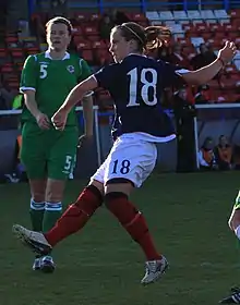 - ↑ Ed Casey (14 November 2003). "Womens Football: A pasting in Preston; Professional touch shows up the Scots; ENGLAND WOMEN 5 SCOTLAND WOMEN 0". Daily Record. Glasgow. Retrieved 21 June 2011.