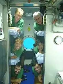 ![]() Justin Brown (bottom right) with the NEEMO 16 crew, June 2012 | |