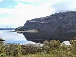 Kåfjorden (Norwegian) or Njoammelgohppi (Northern Sami) is a fjord in Alta Municipality in Troms og Finnmark county, Norway. The 8-kilometre (5.0 mi) long fjord branches off the main Altafjorden. The village of Kåfjord and the Kåfjord Church both lie along the northern coast of the fjord. The European route E06 highway follows the northern shoreline of the fjord. A bridge over Kåfjorden was built in 2013 to shorten the E6 highway route around the fjord.[1][2]