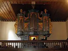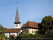 In 1994 it was sold to the community and part of it was converted into an artist's space, art gallery and meeting center, known as the Kulturhof.[4] In December 2011 the municipality voted to create the Schlosszone Köniz, a mixed use zone that includes the church, castle buildings, cemetery and green spaces. The Schlosszone will allow both businesses to develop in the area and help fund the restoration and maintenance of the historic buildings.[5] Today the Swiss Reformed parish of Köniz uses the Commandery church as a parish church. The castle buildings house a restaurant, a music school, the Bern School Museum and the Kulturhof.[6]