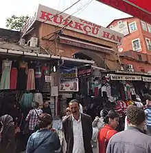 The han is located in the central historic market district that extends from the Grand Bazaar to the Eminönü neighbourhood on the shore of the Golden Horn.[1] Since the founding of the first bedesten by Mehmet II between 1456 and 1461, the Grand Bazaar developed into the city's main hub of international trade, spawning entire districts of shops, warehouses, and merchant lodgings.[2][3][4] A han, a type of urban caravanserai, was a common type of commercial structure in Ottoman architecture (and more broadly in Islamic-world architecture) which served a number of functions including lodging for foreign merchants, storage for goods or merchandise, housing for artisan workshops, and offices from which to conduct dealings.[2]