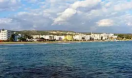 Kızkalesi (English: Maiden's castle) is a neighbourhood in the municipality and district of Erdemli, Mersin Province, Turkey.[1] Its population is 1,781 (2022).[2] Before the 2013 reorganisation, it was a town (belde).[3][4] The town, known in Antiquity as Corycus or Korykos (Greek: Κώρυκος), is named after the ancient castle built on a small island just facing the town.
