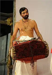 Kalamandalam Sankara Warrier is an Indian percussionist of the Kerala ethnic drum called maddalam, and has specialised in its playing for the dance-drama of Kathakali.[1]