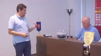 Chairman Bujar Ahmedi drawing the opponent for the 2012–13 playoff